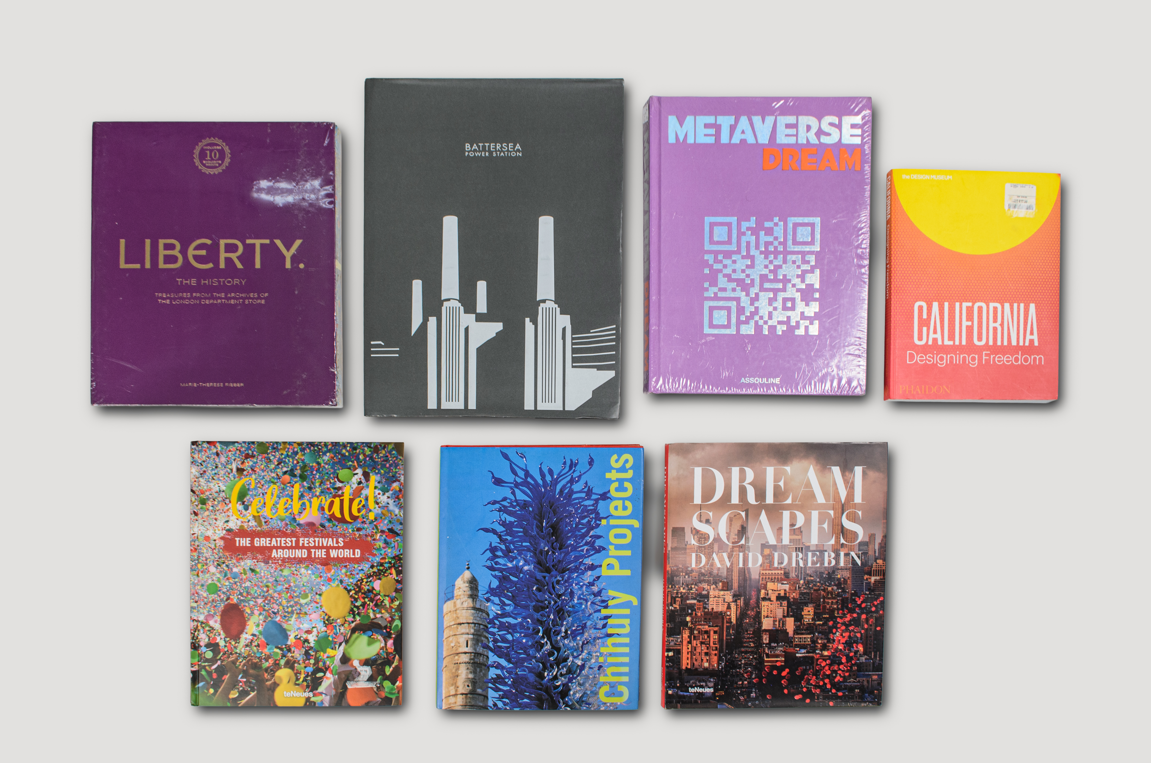 Sette libri di Varia: Liberty, Battersea, Metaverse Dream, California, Celebrate, Chihuly Projects, Dream Scapes.