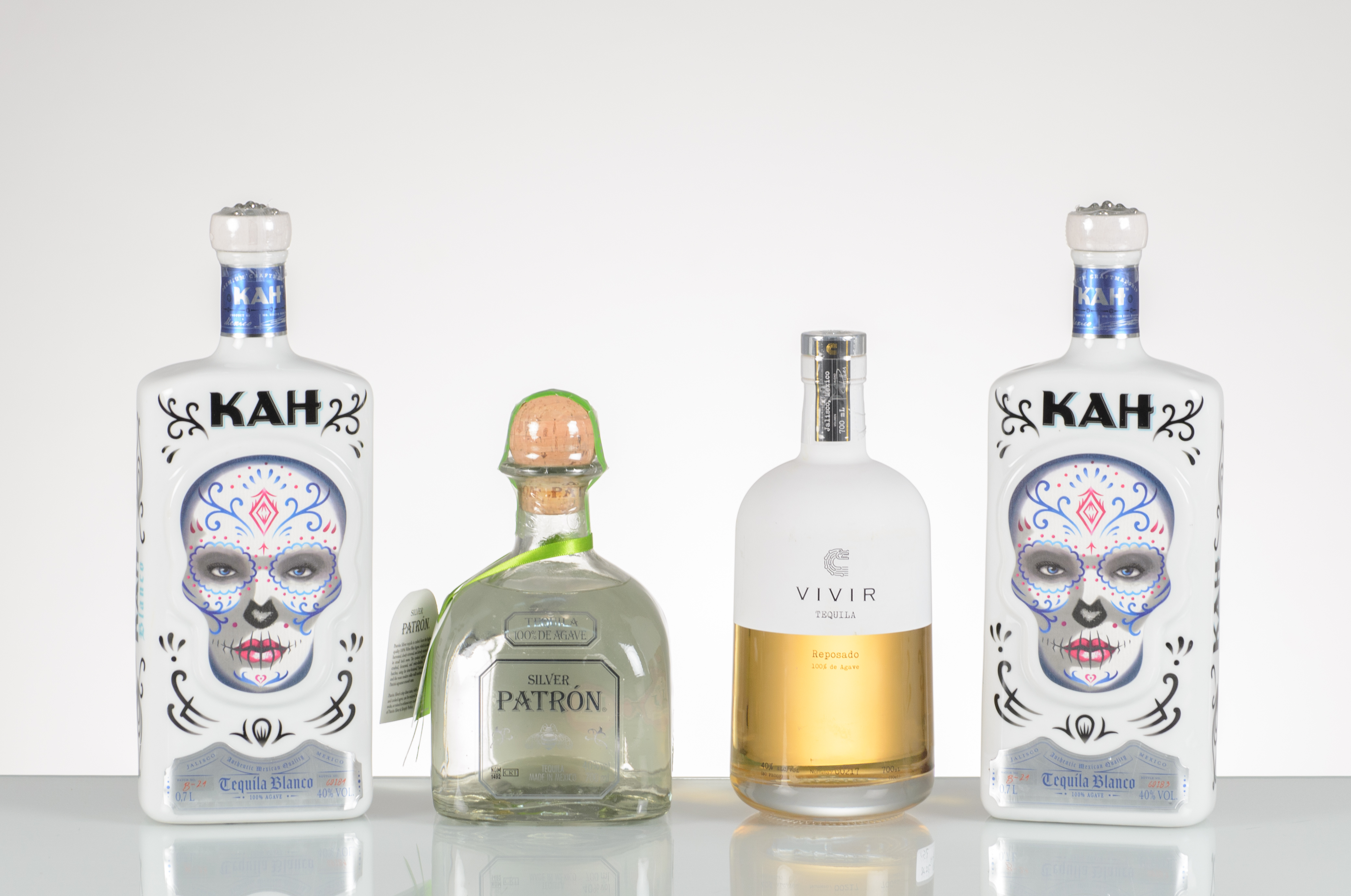 KAH, SILVER PATRON, VIVIR, Quattro bottiglie di Tequila