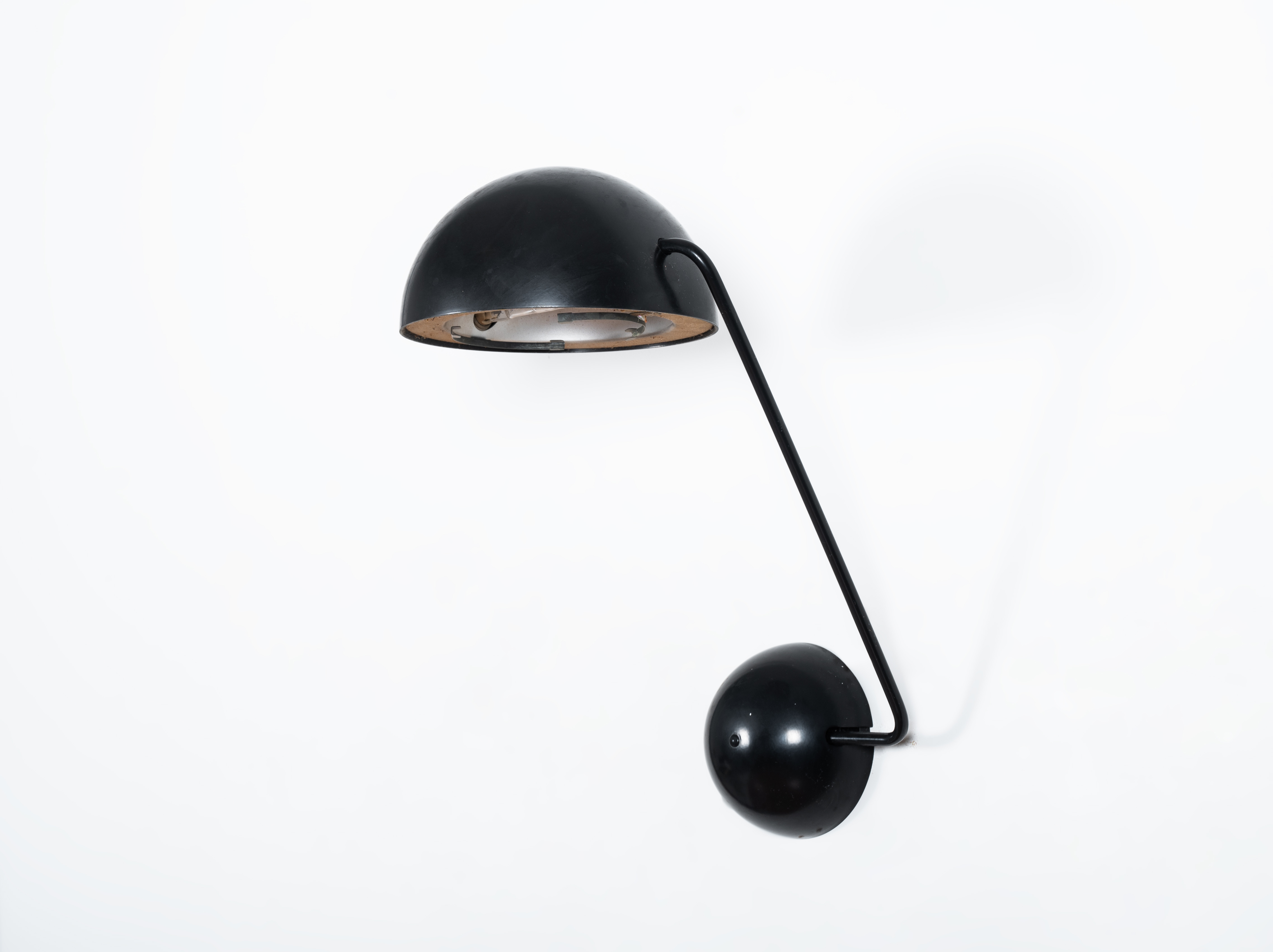 Lampada da parete o da soffitto ad una luce modello “Bikini”, struttura in metallo verniciato nero, diffusore semisferico orientabile. Etichetta di produzione.