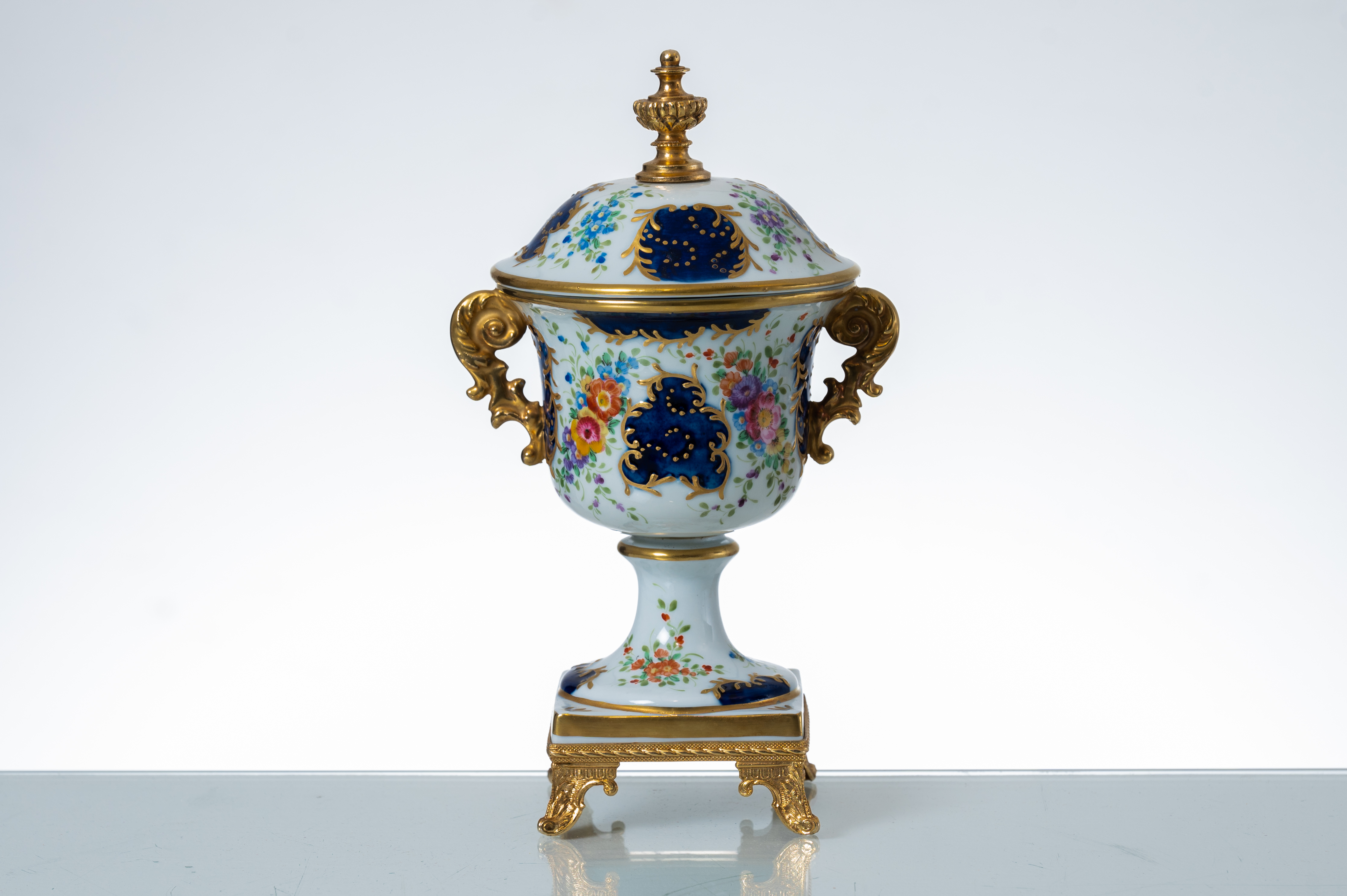 Piccola potiche in porcellana decorata, base in bronzo dorato.