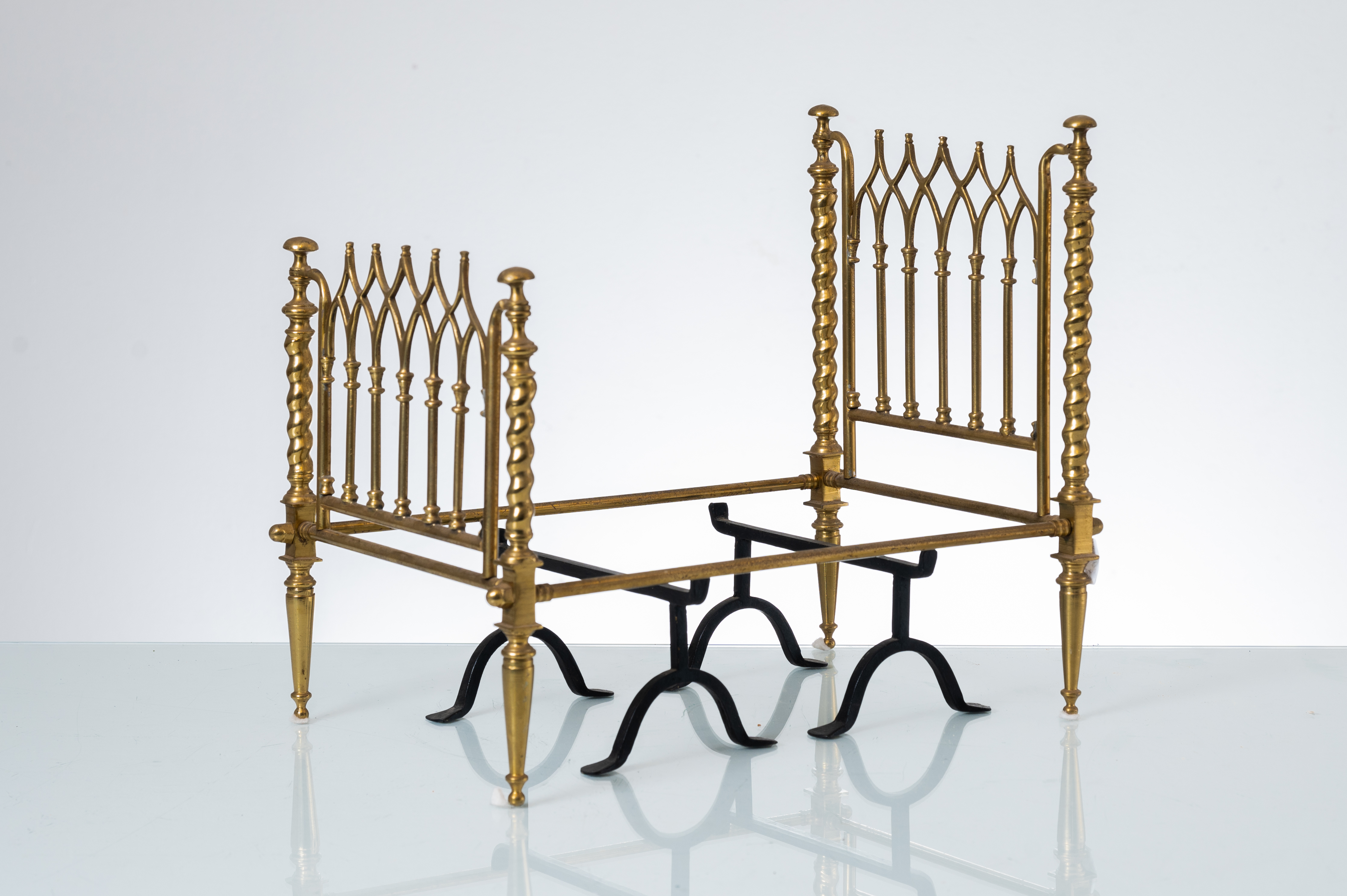 Modellino di letto in ottone con trispiti in ferro.