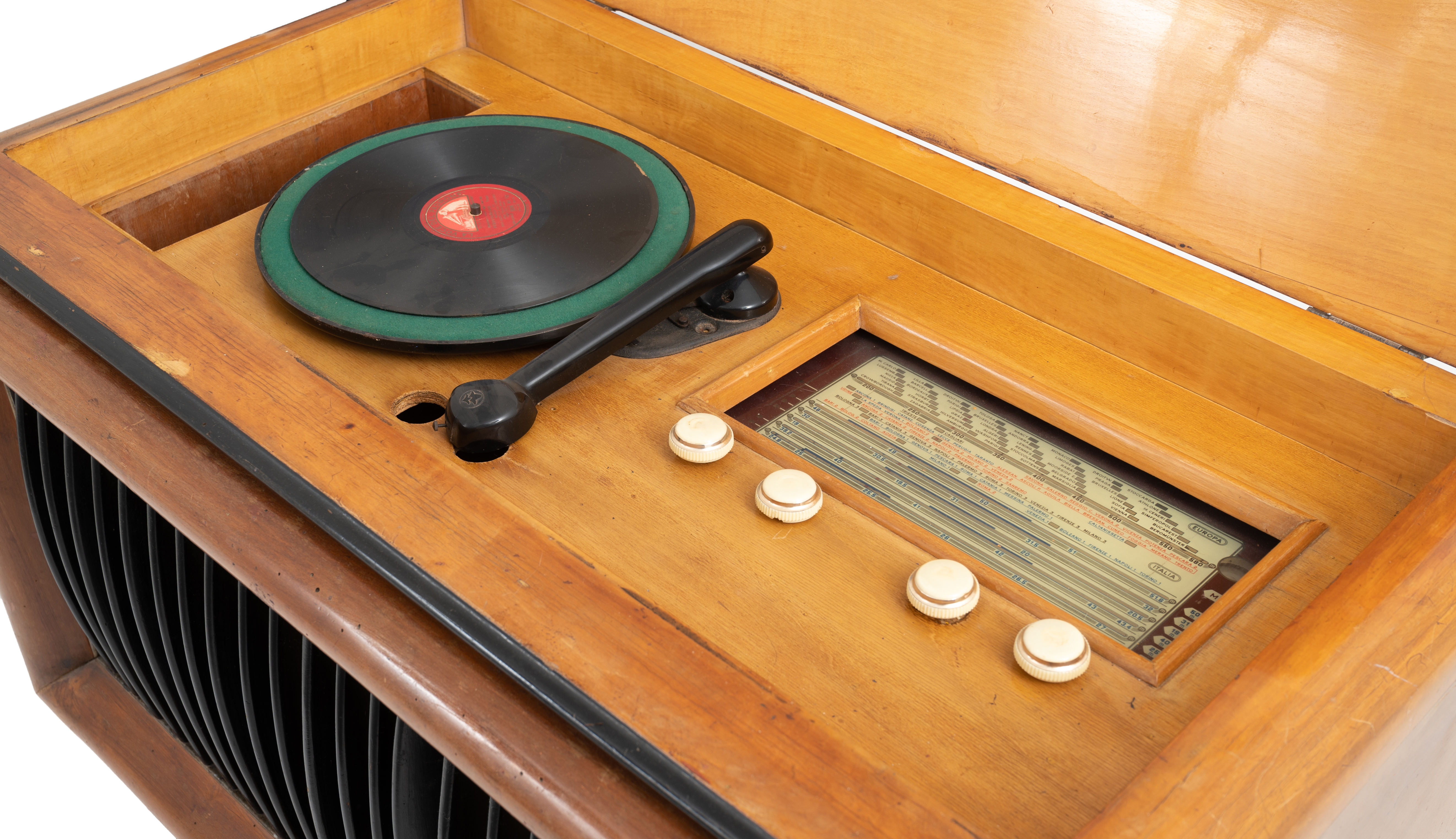 MOBILE RADIO e giradischi in radica di noce, periodo Decò.
