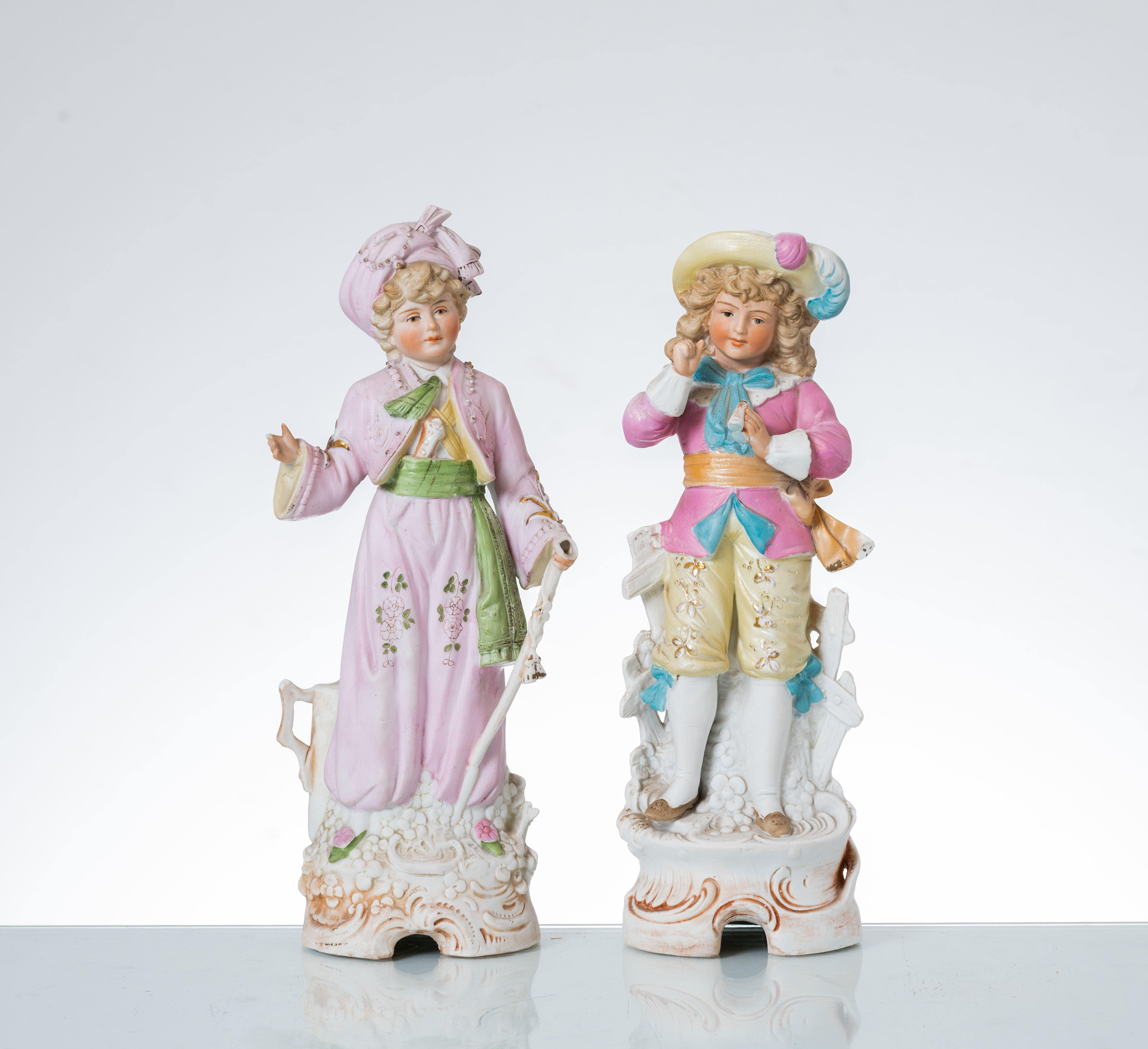 Coppia di sculture in biscuit raffiguranti "Bambini" (usure e rotture).