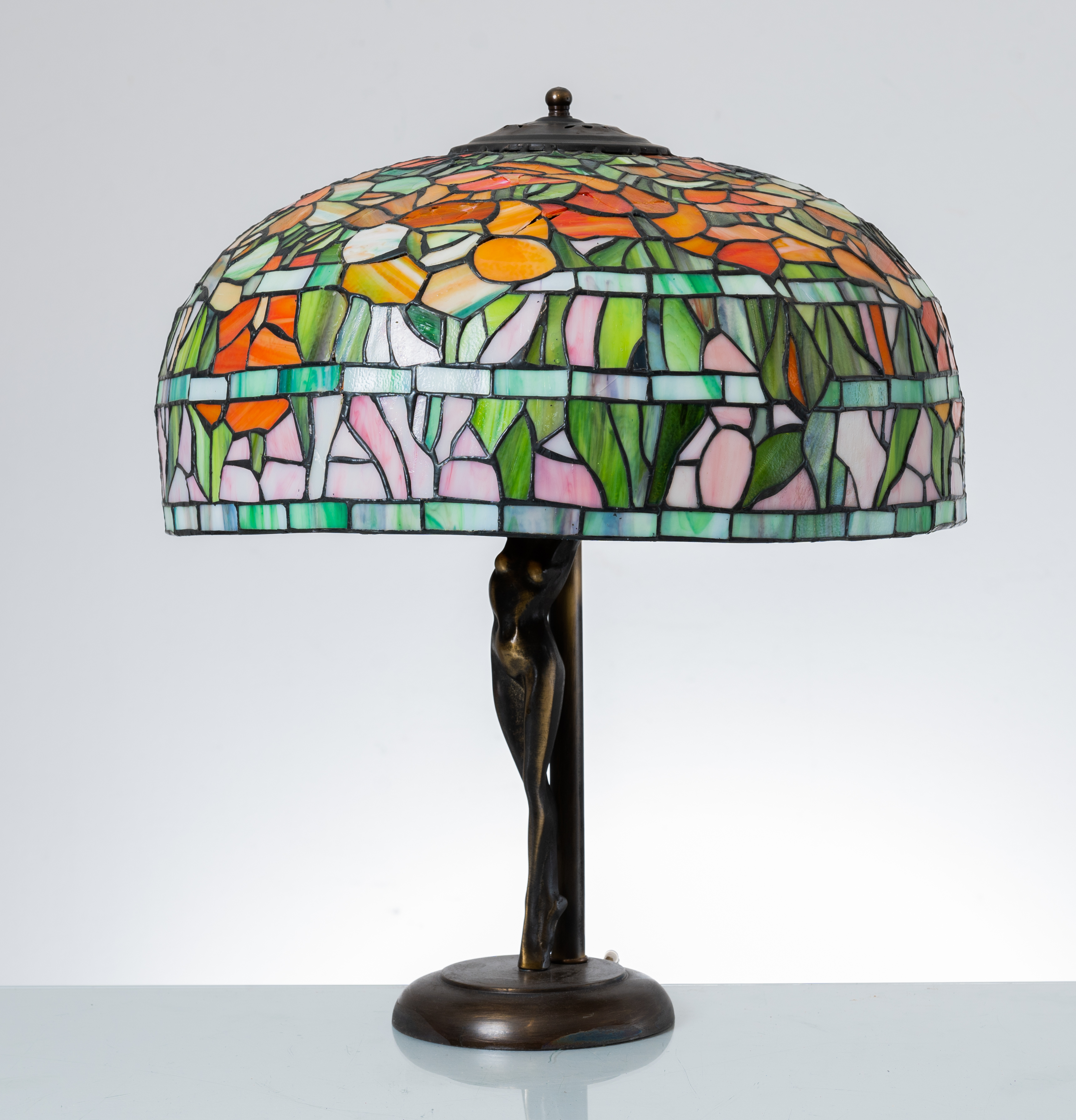 Lampada da tavolo tipologia Tiffany, base in bronzo.