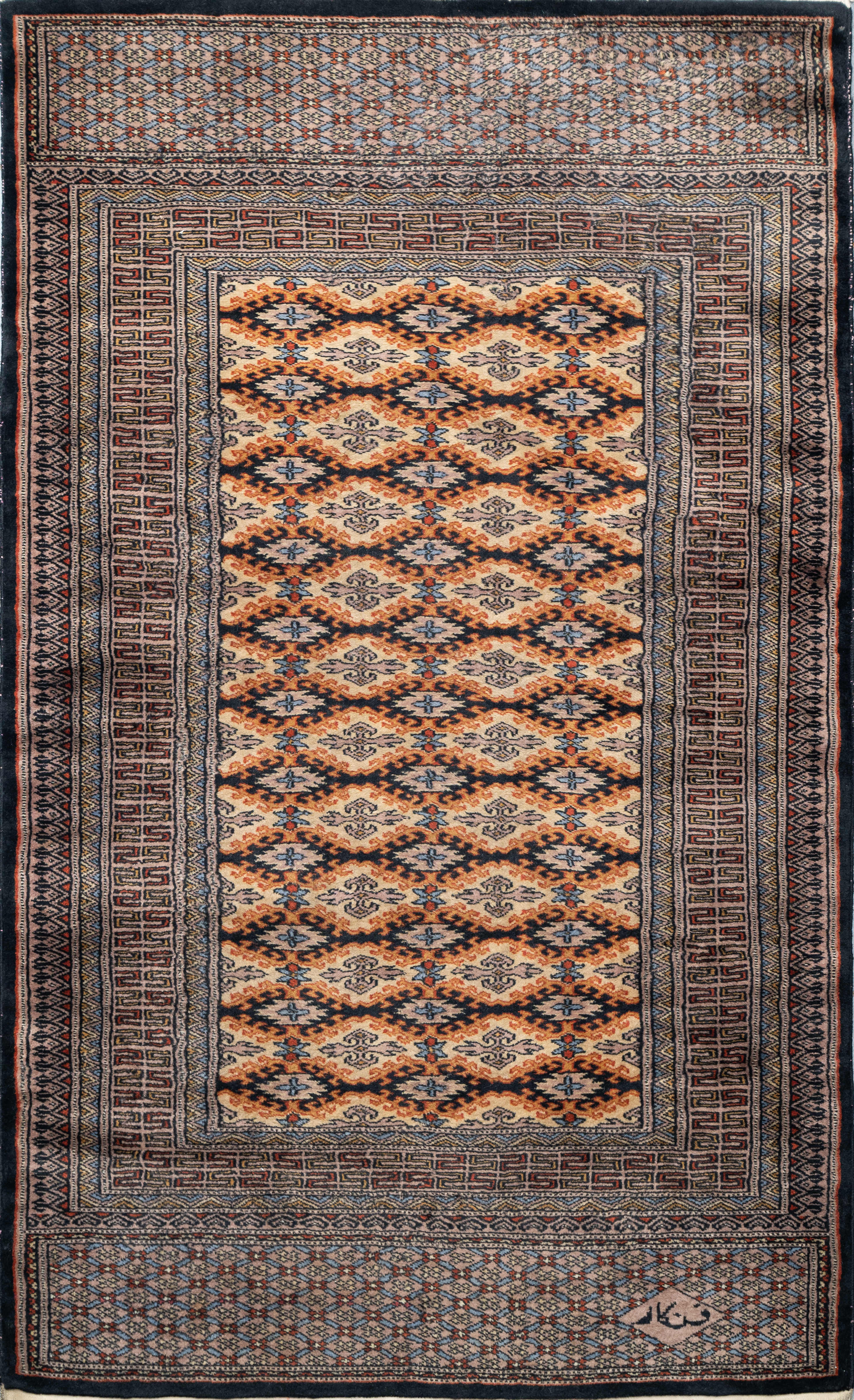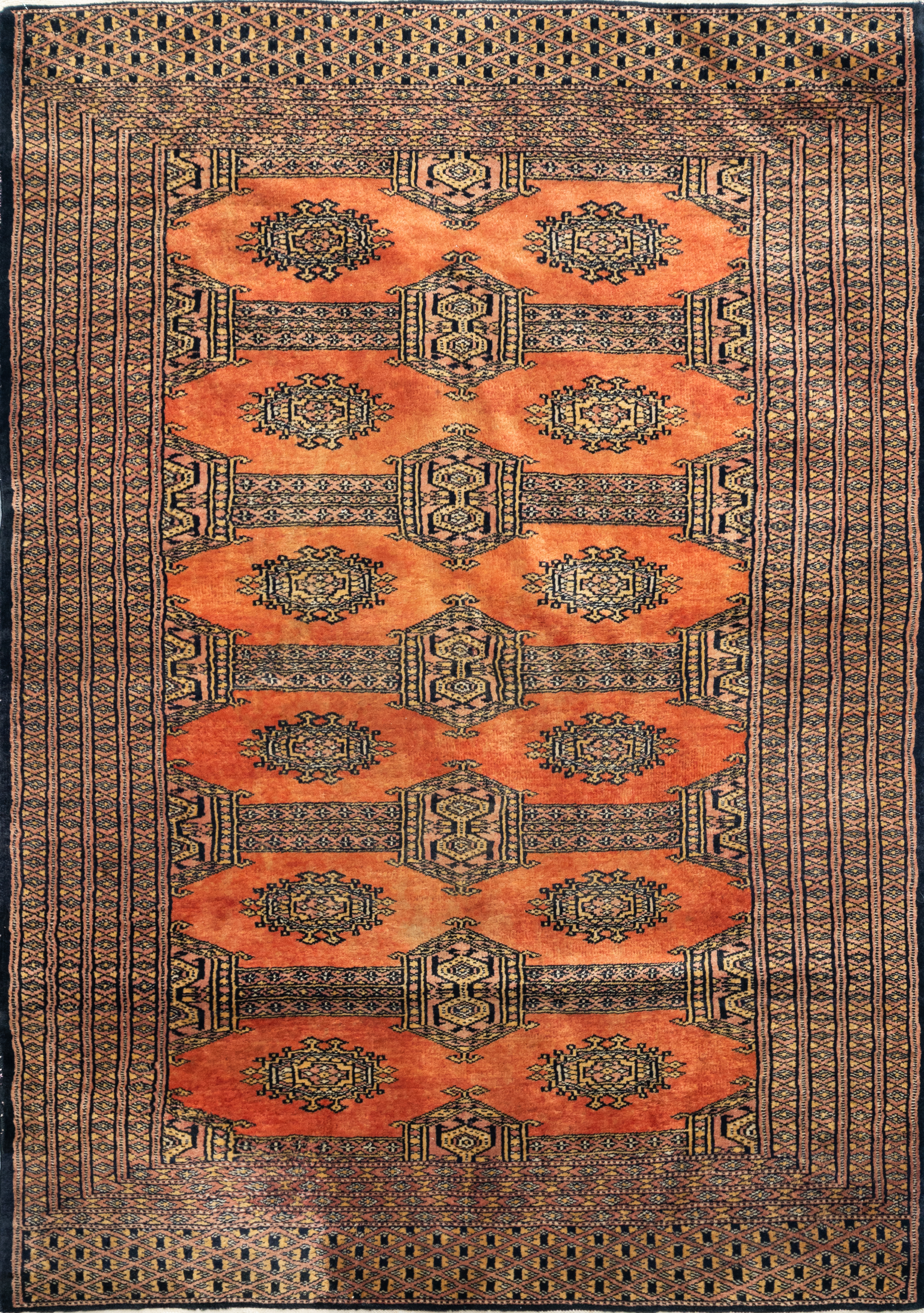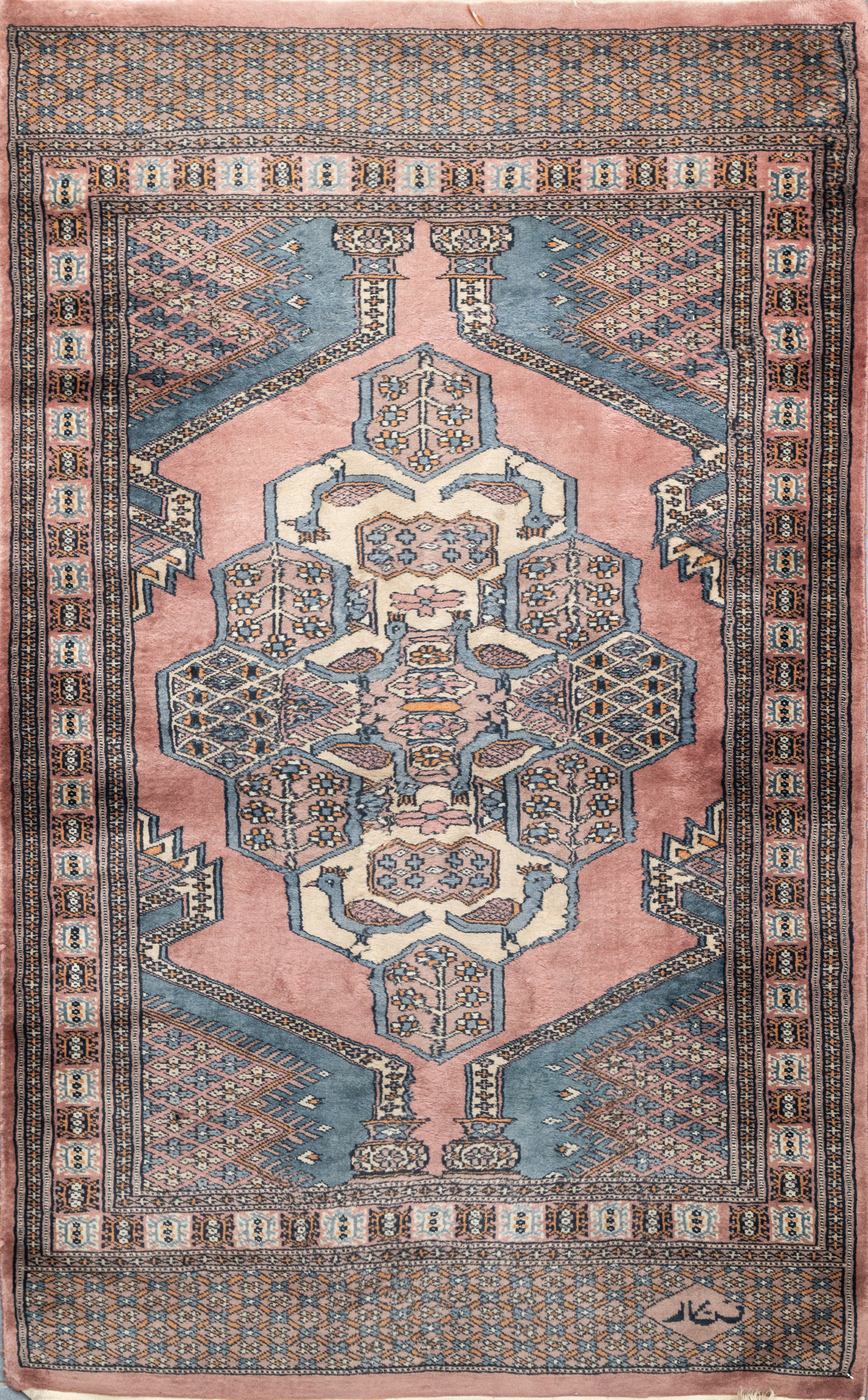 Tappeto Kashmir Bokara, trama ed ordito in cotone, vello in lana.