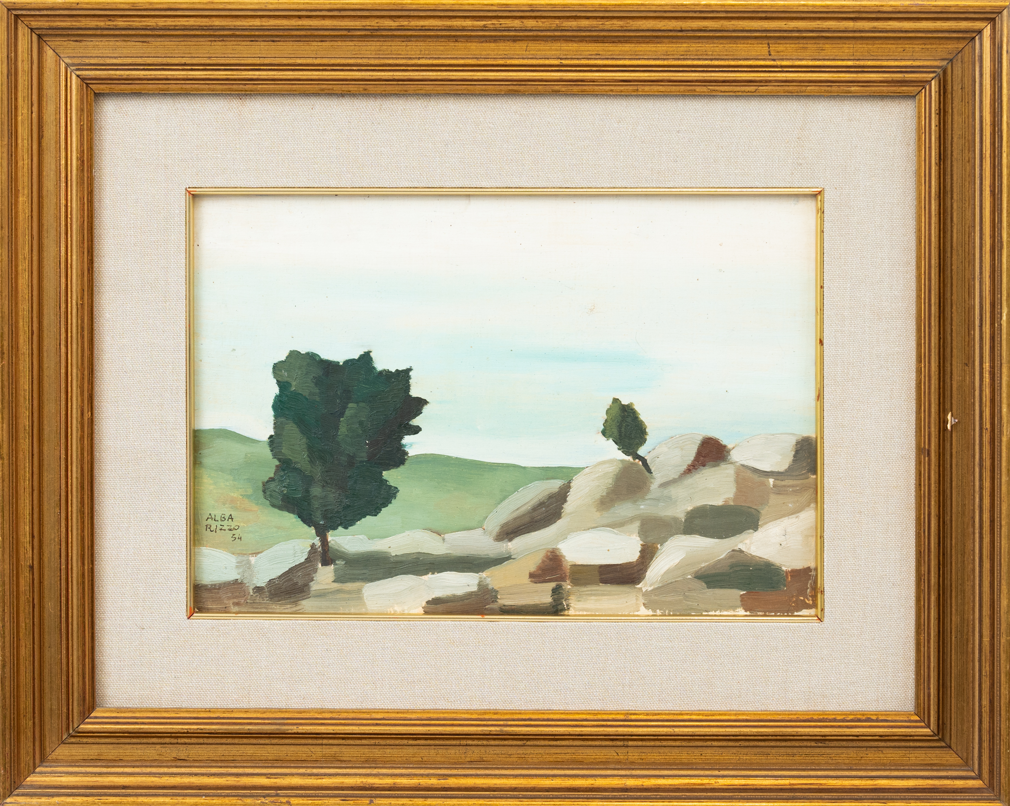ALBA RIZZO, Paesaggio, Olio su cartone