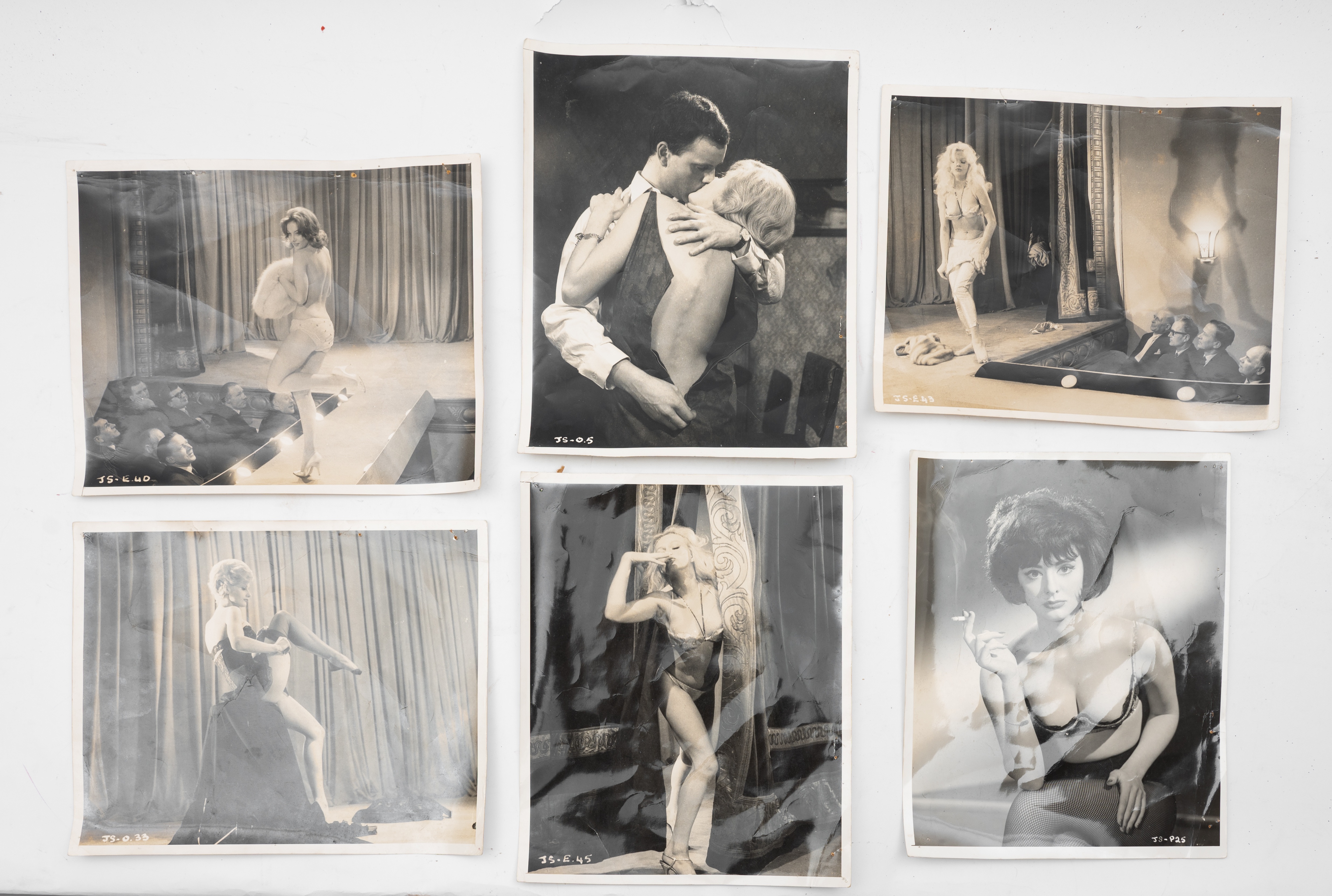SEI FOTOGRAFIE IN BIANCO E NERO DEGLI ANNI ’60 DEL ‘900, che ritraggono le ballerine che in quegli anni impazzavano nei night a Palermo e nel resto d’Europa. Le fotografie misurano cm 21 x 25,5.